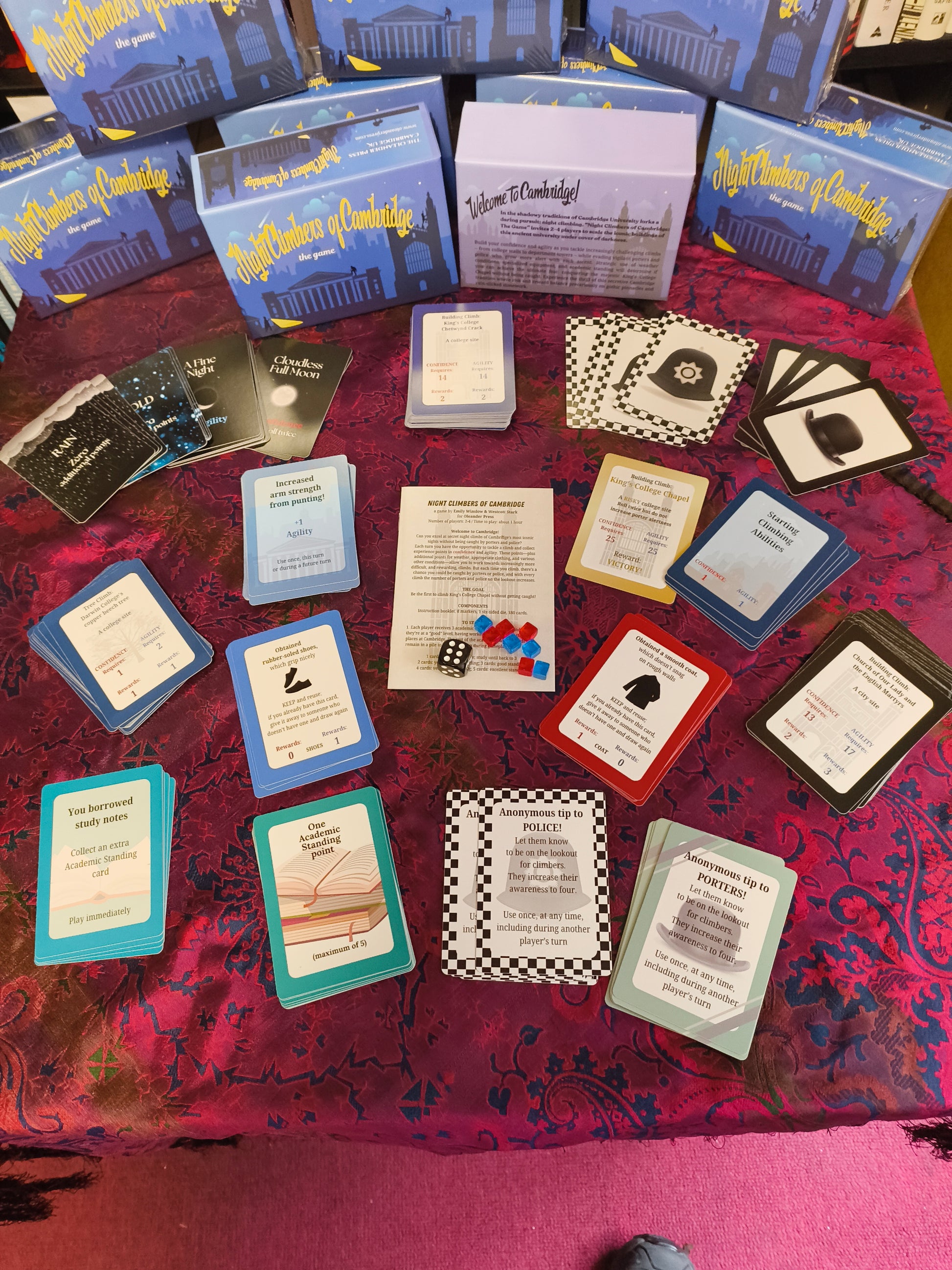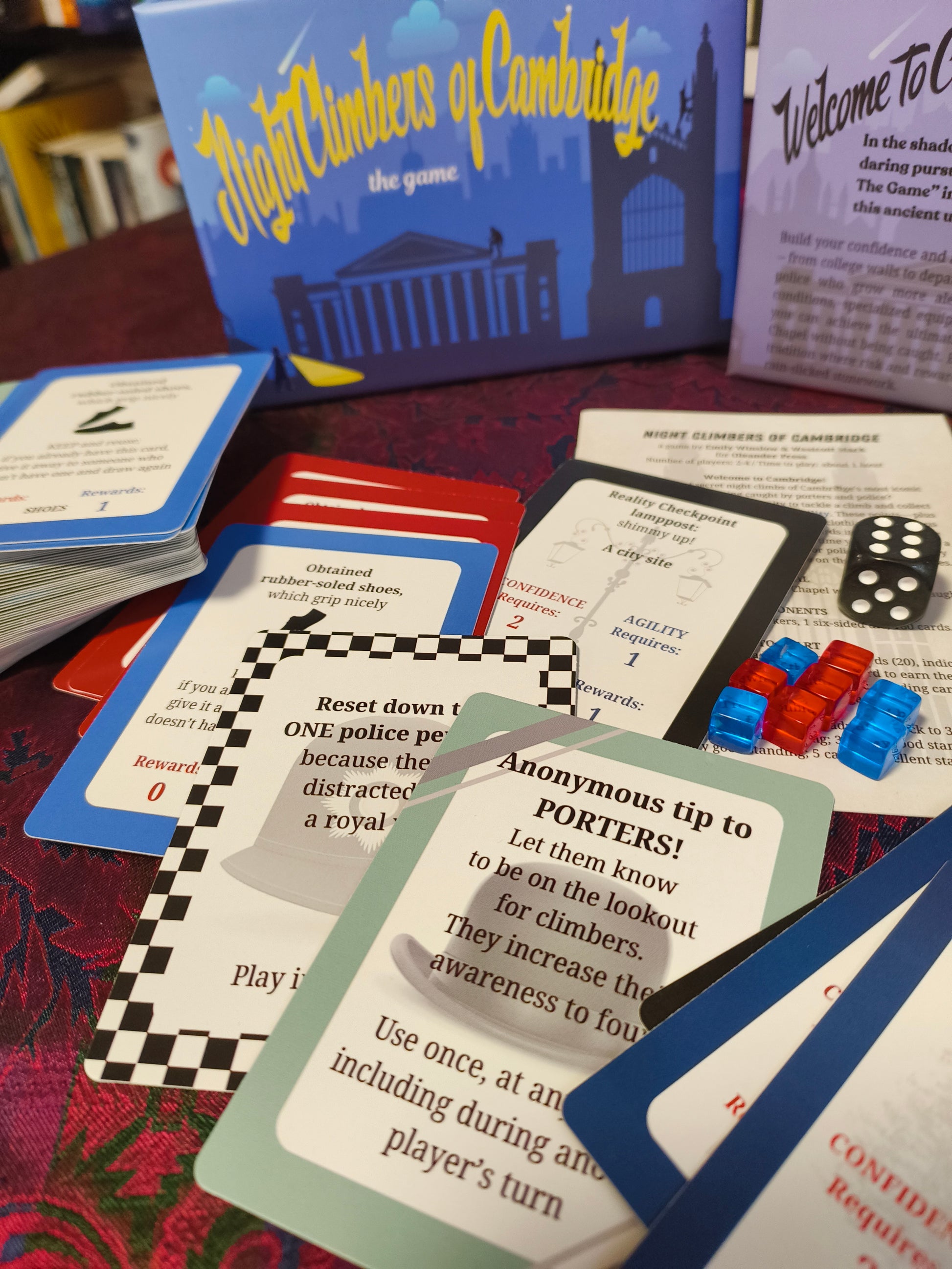 In the shadowy traditions of Cambridge University lurks a daring pursuit: night climbing. "Night Climbers of Cambridge: The Game" invites 2-4 players to scale the iconic buildings of this ancient university under cover of darkness.